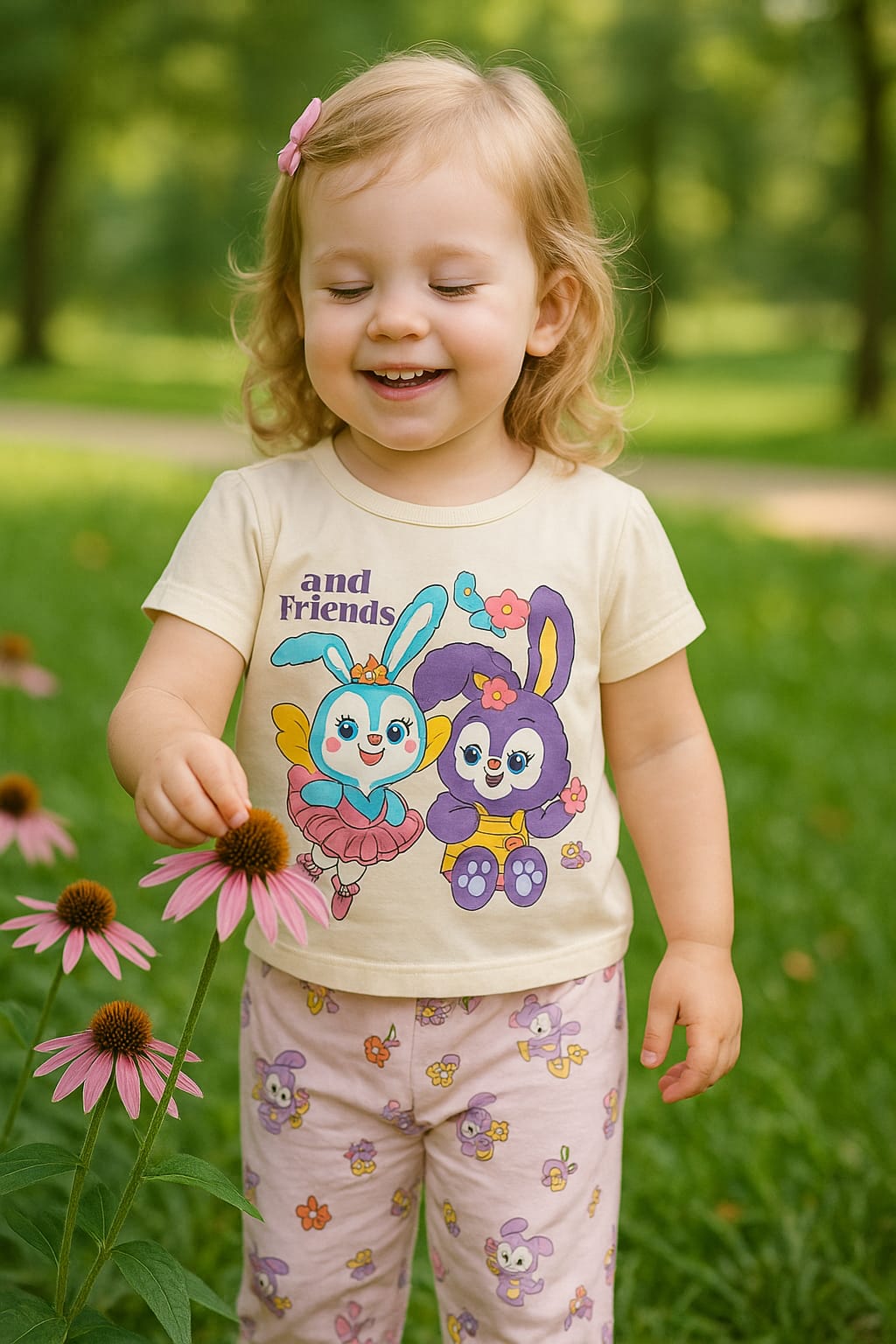 Dress your little sunshine in the ultimate blend of comfort and cuteness with our Floral Bunny Friends designed specially for toddlers and kids aged 1 to 6 years. Made from a soft blended summer fabric, this breathable outfit is gentle on delicate skin and ideal for warm-weather play. The charming cartoon bunny characters and playful floral print make it a favorite for both everyday wear and special outdoor moments.